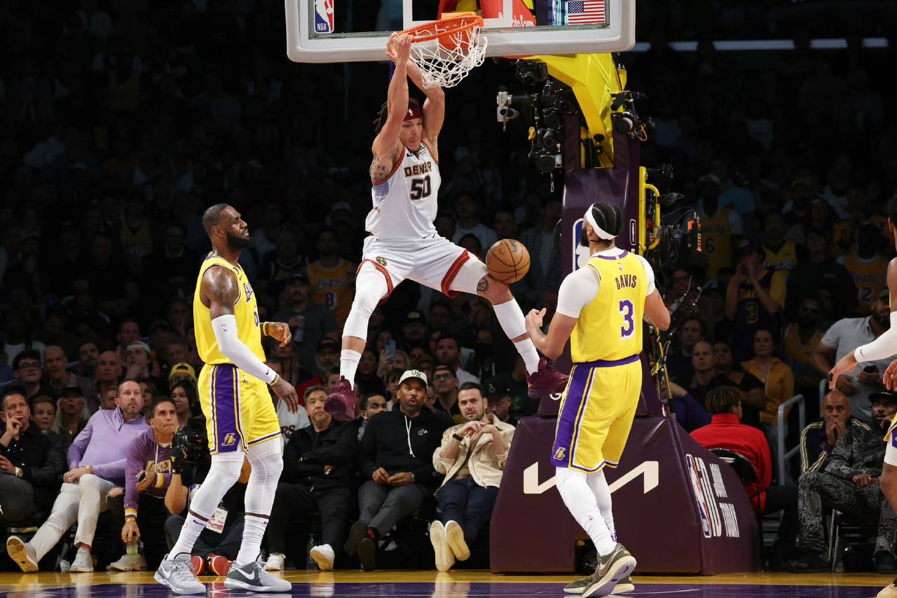 虽然掘金三分也只有27中8,但他们在禁区建立了巨大优势:他们在禁区得到48分,篮下20中16,同时中距离神准31中15。约基奇全场砍下27分10板14助,率领掘金在家门口拿下开门红。