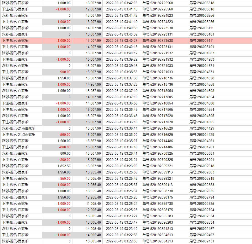 2018年五月无意中接触了网赌,以前连麻将的不打的人,刚开始接触一看好多游戏,就充了几百去斗地主一会红了大几百,抓了副好牌没有打赢一把炸太多进去,感觉太假我一出牌他们2个牌都出来了,只玩了一次斗地主就没有玩了。真人炸金花玩了几百感觉也假,只玩一次也不玩了,我就继续看一下看见百家乐现场视频以前根本不知道什么是百家乐,就充了几百,根本不会玩我研究了一下出2个庄就砸闲或者出2个蓝就砸庄,那时根本不会看路。有输有赢因为不会充的少,知道打了一段时间流水不少就是本金少了大几千,就不想玩了觉得打不赢。就研究一下一下看见AG里面的炸金花,那时会看一点路了,觉得炸金花没有和这比百家乐好,研究了一下直接一万充值,进去500砸中继续中五下中3下4下,直接1000中下几下又中,2000就下中中中,就3000下反正赢多输少一直3000下每把都下心里觉得开什么就下什么,3个小时红了7万多想到打到10万就下,心里急了就5000下输一万下输,一会掉下去还到2个的时候提现了,这样算下来我没有输赢。第二天又研究一下,发现出现7个长龙后面出龙的概率很小就觉得可行我可以在出龙后倍投,充值1个,进去半天没有开龙了我先玩几把500中1000中,2000中,赢了大几千。2000输2000输,4000输4000输蒙了,那时不会买长龙看到他开了10把,余额还有6000,看他开完继续这长龙把我的倍投机话打乱了,磨了一天挂了。